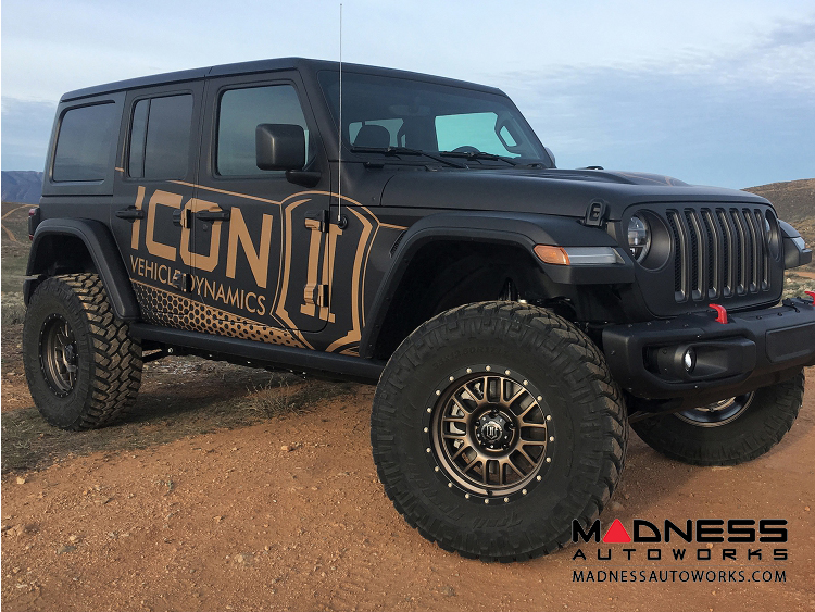 Through an accelerated testing process dubbed the “ICON1K” R&D program, ICON has logged over a thousand miles in the dirt pushing the JL to off-road extremes to identify limiting factors in OE components, develop products that remove these limits, and further extrapolate performance out of this vehicle. This 2.5” suspension system has been tweaked, tuned, and revised several times over the course of this ICON1K testing in an effort to provide unparalleled ride quality and vehicle dynamics for everything from rock crawling to high-speed desert running.