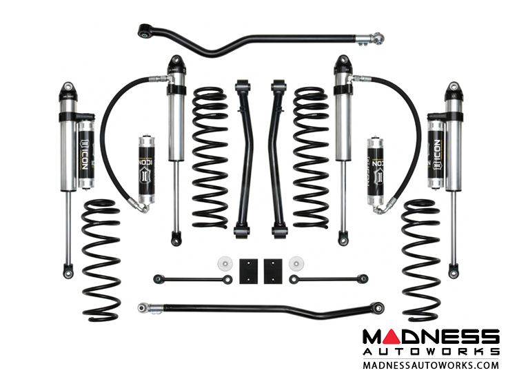 Through an accelerated testing process dubbed the “ICON1K” R&D program, manufacturer has logged over a thousand miles in the dirt pushing the JL to off-road extremes to identify limiting factors in OE components, develop products that remove these limits, and further extrapolate performance out of this vehicle. This 2.5” suspension system has been tweaked, tuned, and revised several times over the course of this testing in an effort to provide unparalleled ride quality and vehicle dynamics for everything from rock crawling to high-speed desert running.