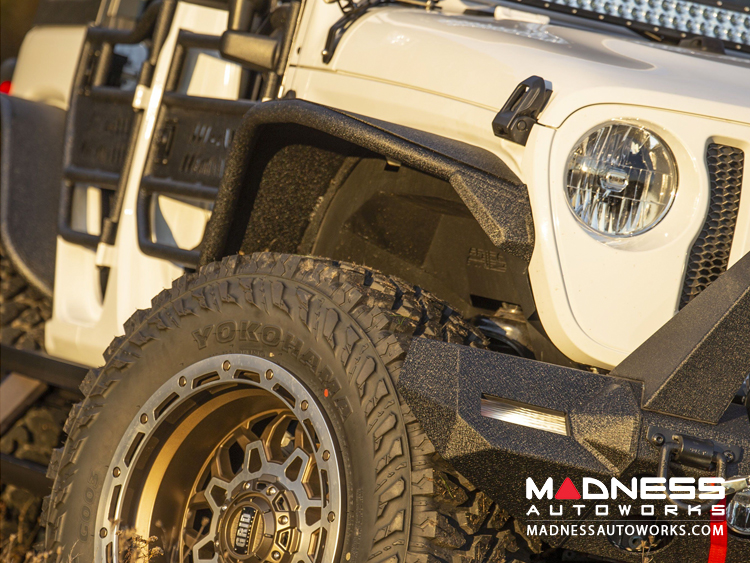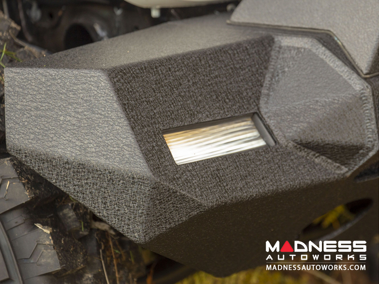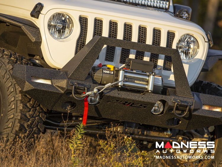 - Bumper provides cutouts for integrating Jeep JL fender flare turn signals