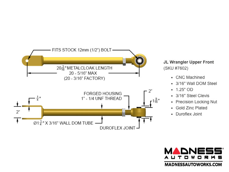 - Duroflex™ Upper Front Control Arms with our patent pending Duroflex™ Joints
