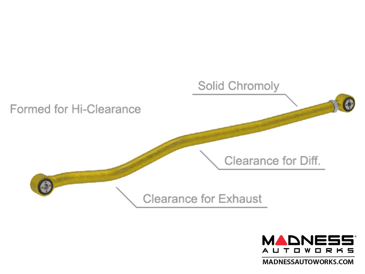 - Front & Rear Solid Chromoly Track Bars equipped with patented Durotrak™ Bushings.