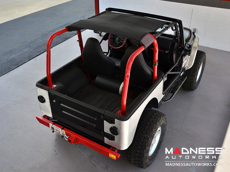 Need a bit of shade while riding topless in your Jeep Wrangler with a custom roll cage?
