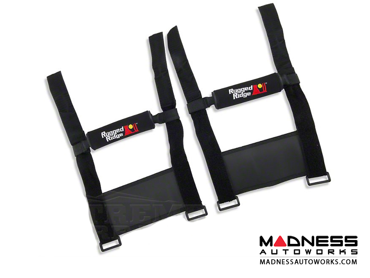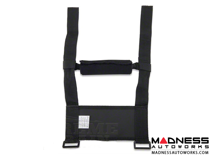 Constructed of tough nylon webbing with either a molded sure-grip handle (Ultimate), soft foam handle (Deluxe) or plain Nylon webbing (Sport). The Ultimate Grab Handles are available in two hot colors to accent the Jeeps Interior-Red and Black. Deluxe and Sport models fit all Jeep roll bars and 3 inch roll cages with padding. Ultimate Grab Handles will fit 2 inch or 3 inch padded or un-padded roll bars. All designs are packed in pairs.