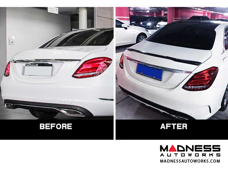 This Rear Trunk Spoiler is designed to really set off the exterior of your Mercedes Benz C-Class W205. Manufactured to the highest standards for easy installation, precise fit and excellent finish. This Rear Trunk Spoiler is designed to cover the factory piece and give a substantial upgrade to the look of the Mercedes Benz C-Class W205.