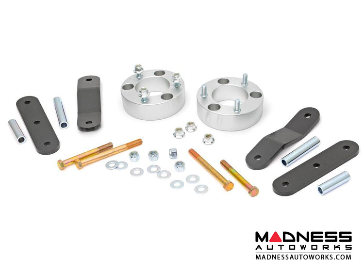 This kit is ultra-easy to install! A set of strut spacers attach to the top of the strut, with no strut disassembly required, making the process considerably smoother! Also included are a set of 3/8in plate steel shackles, engineered to preserve factory ride quality and reduce driveline vibrations. These heavy duty shackles provide lift height easily and effectively, while their beefy design and powdercoat finish are durable enough to hold up to the elements.