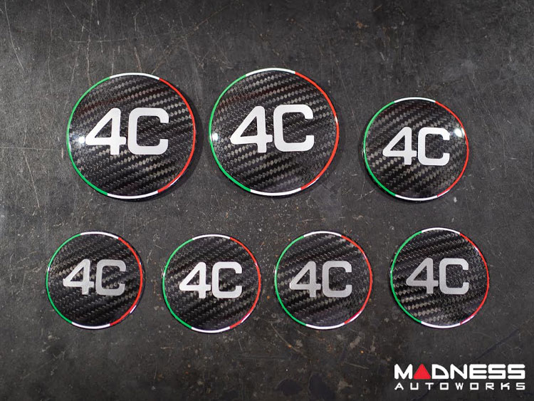 Alfa Romeo 4C Carbon Fiber Badge Cover Kit - Italian Stripe