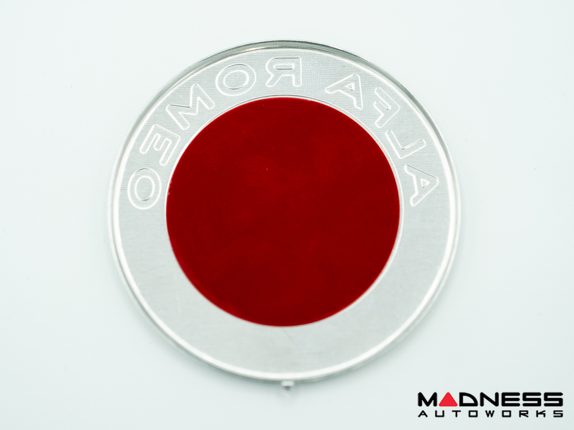 Alfa Romeo Emblems + Badges + Wheel Caps Kit - Black - "Alfa Romeo" + "Sportiva" Emblems + 2 AR Badges + 4 Center Caps
