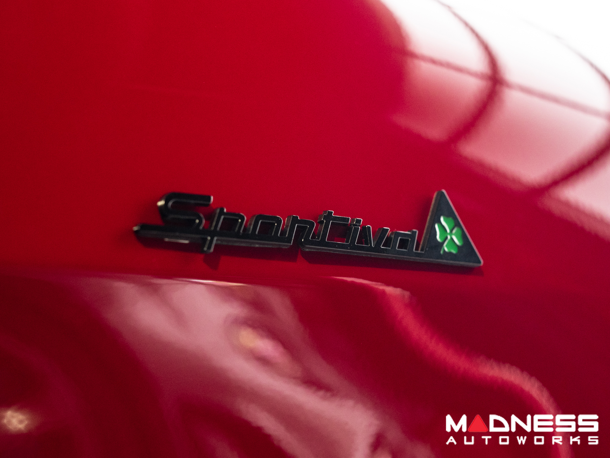 Update your Alfa Romeo with this great looking set of Custom "Alfa Romeo" and "Sportiva" Black Emblems and Front and Rear Custom Badges.