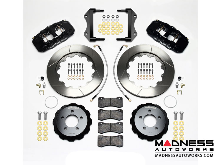 This new Wilwood forged aluminum Aerolite brake package includes radial mount calipers and 14.25" diameter Spec 37 alloy direction vane two-piece rotors. These front calipers are six piston and are available in black or red. The Aerolite 6R front brake kit is engineered to bring high-tech styling while delivering track proven endurance.