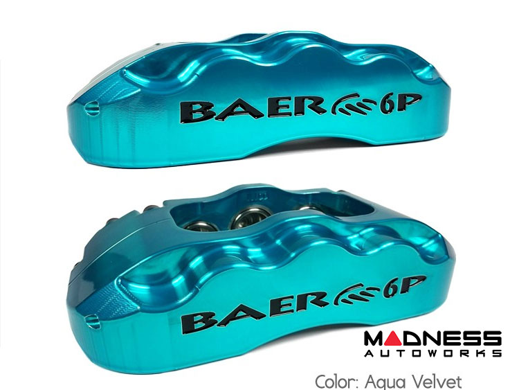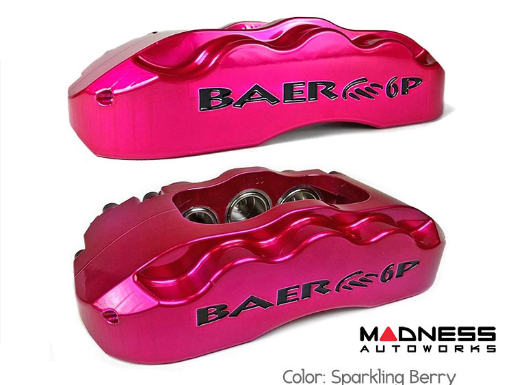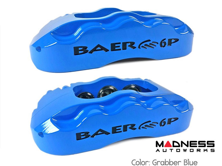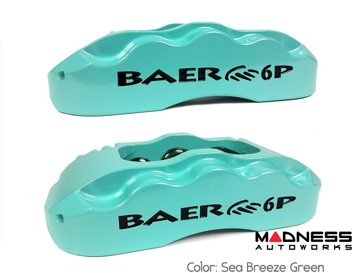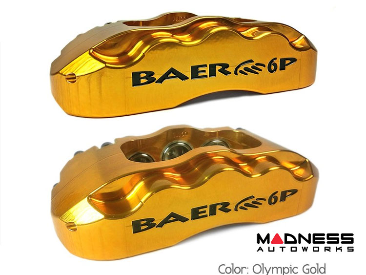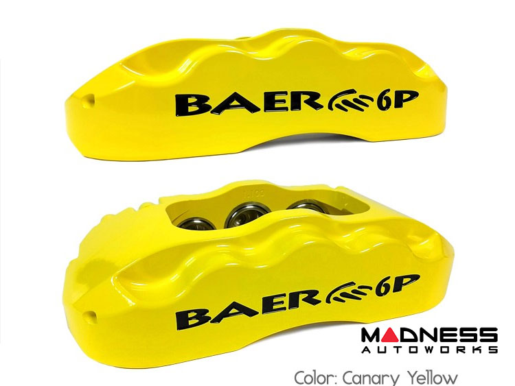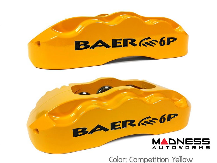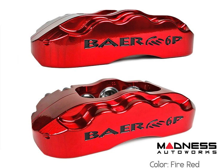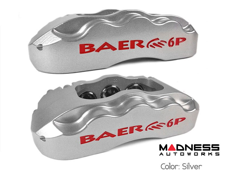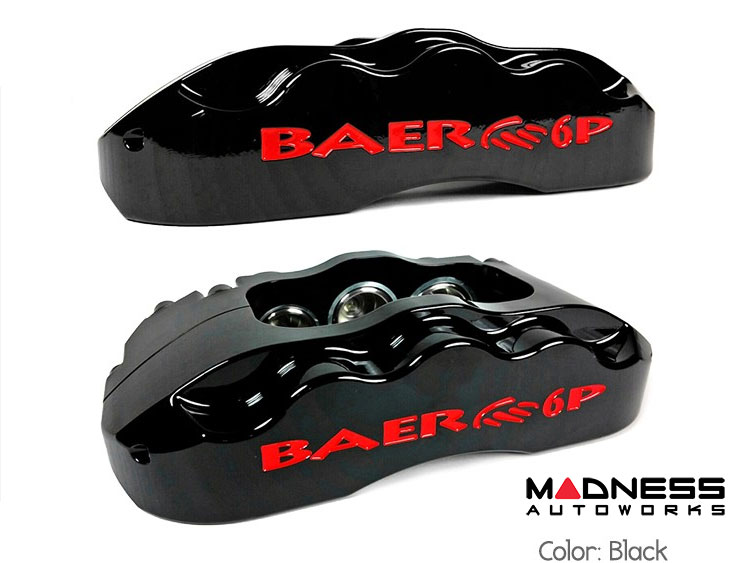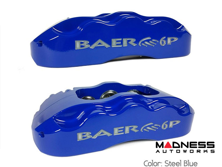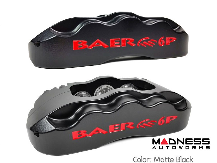 This system features 14", 2-piece slot, drilled and zinc plated rotors with the new Baer 6T 2pc 6 piston caliper. The 6T features dust and weather seals and uses the large 6S D1247 pad type.