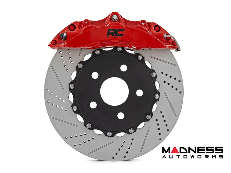 - High-performance 6-piston calipers with durable red powder coating