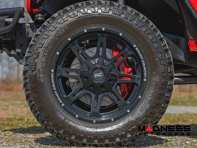 Designed with a lightweight construction that minimizes vehicle weight without compromising strength, this kit not only enhances stopping power but also contributes to your Jeep's overall performance and responsiveness. The brake kit includes all necessary mounting hardware for a straightforward installation, ensuring system integrity and easy setup. Please note, a minimum of 17" wheels and at least 3/8” of clearance from the face of the caliper to the rear surface of the wheel is required for proper fitment.