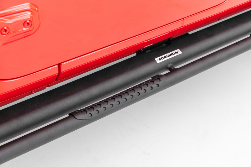 The GOR Dom Extreme DS features advanced high-performance steel step pads with a unique punched hex pattern, ensuring a secure, no-slip grip even in adverse weather conditions. These steps offer flexibility with multiple mounting positions along the sturdy outer rub rail, tailored to suit your needs. For those who prioritize a streamlined aesthetic or need enhanced off-road adaptability, the steps are easily detachable, offering unmatched versatility.