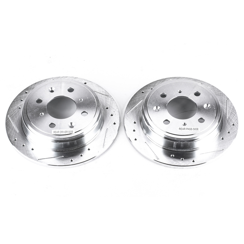 Honda Civic Brake Rotors (2) - Rear - PowerStop - Evolution Drilled & Slotted - Silver Zinc Plated - `92-`00