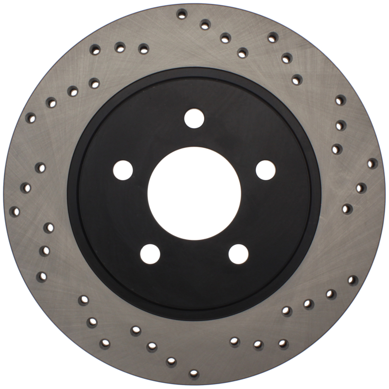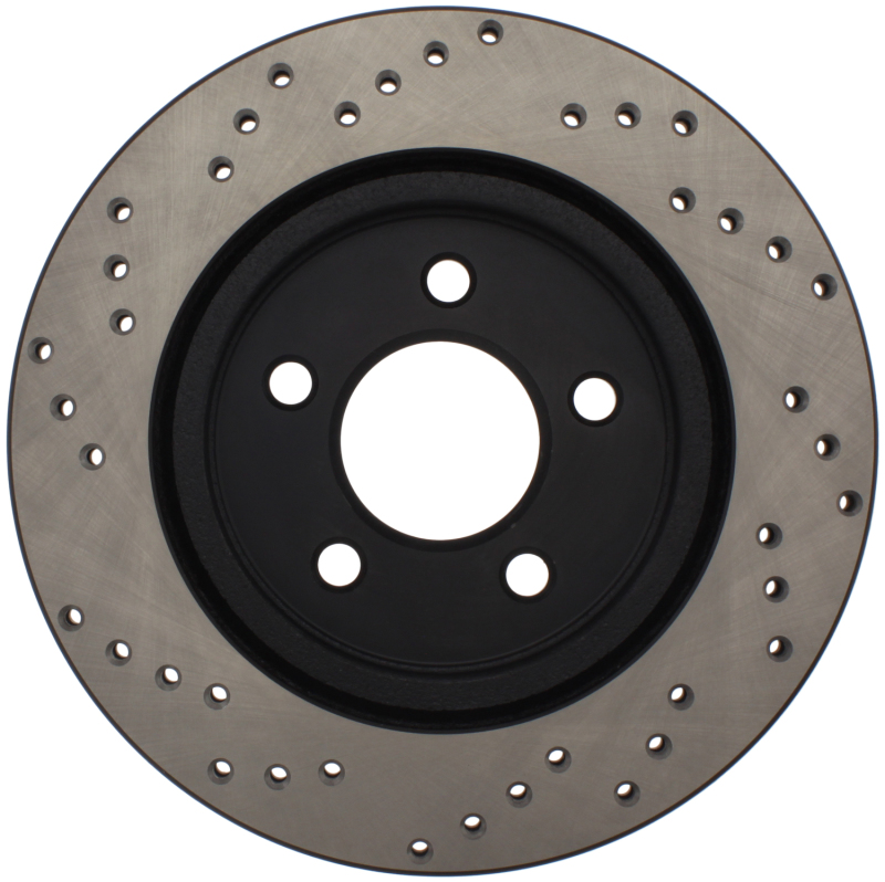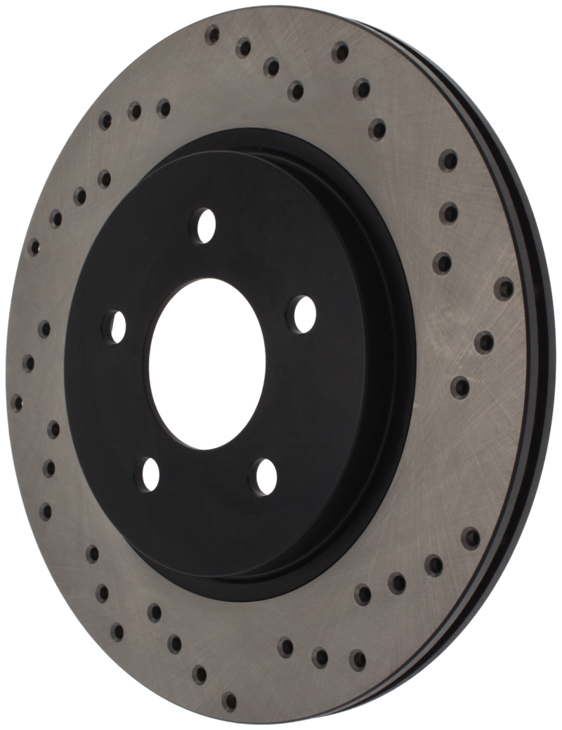 The StopTech Drilled Sport Rotor is a one-piece, direct replacement for your factory brake system, crafted to work seamlessly with stock calipers. This rotor features unique cross-drilling that effectively aids in heat and brake dust dispersal, preventing pad glazing while enhancing both wet and dry braking performance. The black e-coating not only provides a layer of protection against corrosion but also contributes to the rotor’s longevity. With its high carbon metallurgy, this rotor offers quieter operation, better resistance to cracks, and superior overall performance.