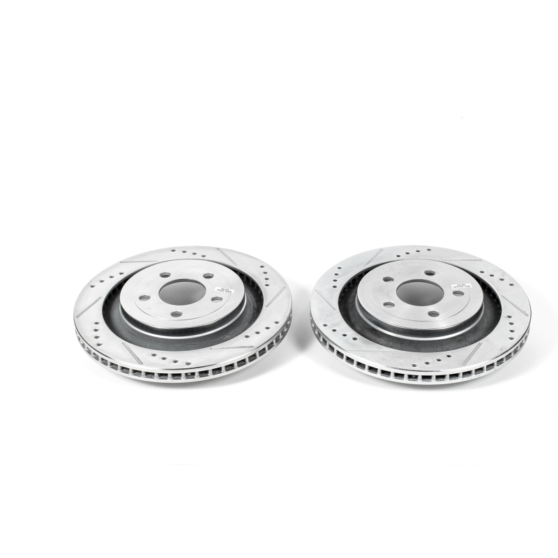 Ford Mustang Brake Rotors (2) - Rear - PowerStop - Evolution Drilled, Slotted & Plated - Silver - `15-`20