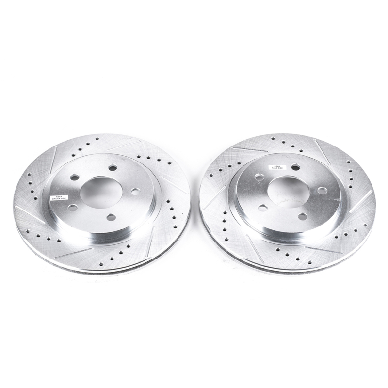 Ford Mustang Brake Rotors (2) - Rear - PowerStop - Evolution Drilled & Slotted Zinc Plated Rotors - Silver - `05-`14