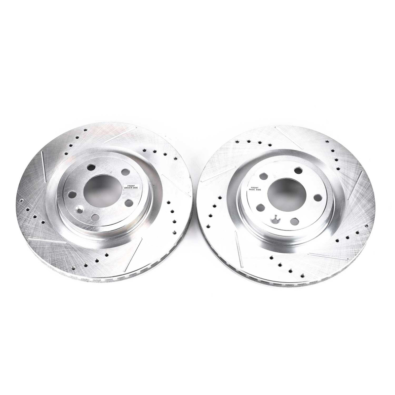 Ford Mustang Brake Rotors (2) - Front - PowerStop - Evolution Drilled & Slotted - Silver - `11-`14
