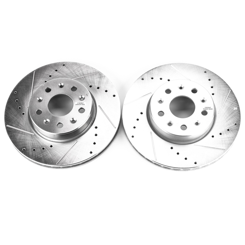 Chevrolet Camaro Brake Rotors (2) - Front - PowerStop - Evolution Drilled & Slotted - Silver - 2016-2019