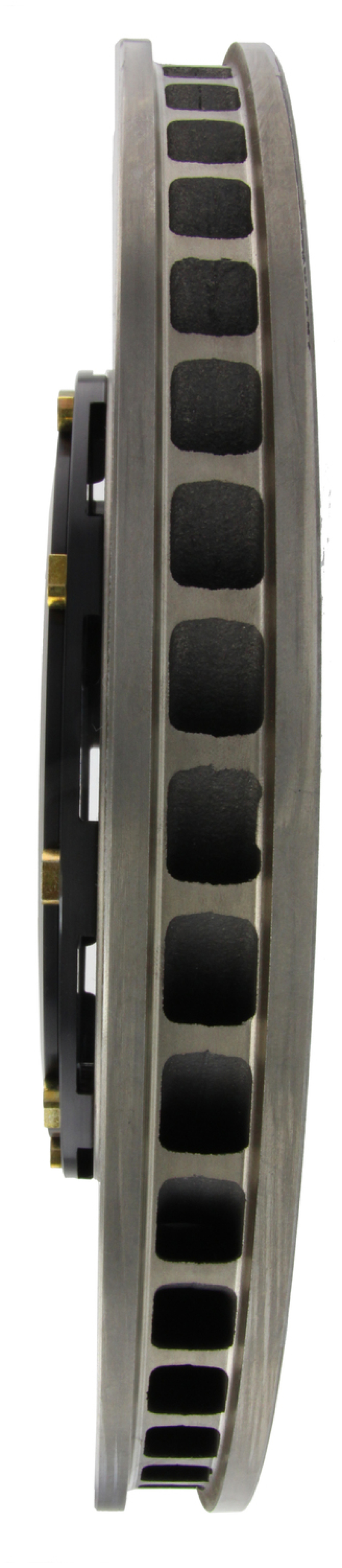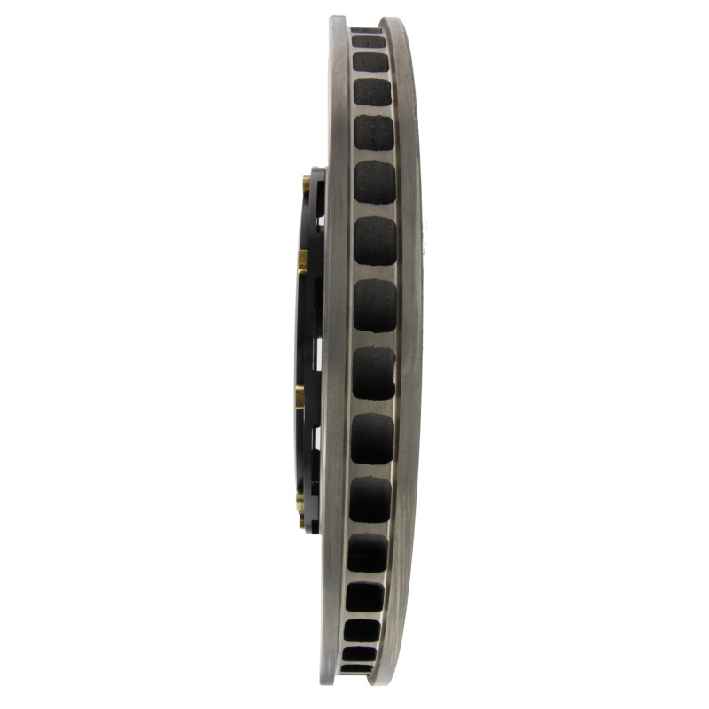 Crafted by Stoptech, the AeroRotor 2 Piece Slotted Brake Rotor promises superior functionality and durability. Retaining the original diameter and thickness of factory rotors, it offers advanced cooling due to its patented internal vane design. This innovation pushes up to 80% more air than standard rotors, substantially reducing the risk of fade during intense braking scenarios. The rotor comprises a friction ring made for improved heat dissipation and a billet aluminum AeroHat with directional stand-offs, ensuring optimal airflow management.