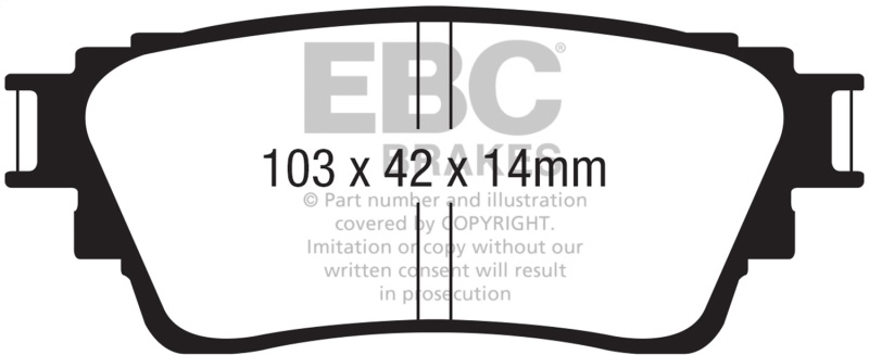 EBC Yellowstuff is an aramid fibre based brake compound with high brake effect form cold and is possibly one of the first ever compounds that can be used for STREET AND TRACK DRIVING. These pads do not require warm up but do get even stronger under the heat of hard driving. These are not a low dust pad and if your desire is for a low dust premium street use pad, you should consider EBC Redstuff.When considering full race use, Yellowstuff has been a strong favourite, having been used for two years in the Swedish Camaro Cup and at numerous other race events where a stock caliper system is fitted.It is also the choice of 90-percent of the Mazda MX5 Miata competitors in the UK race series and has an unblemished record as rotor friendly track pad for vehicles up to 2000 lbs weight or 200 BHP.In the USA the SCCA and NASA drivershave been testing Yellowstuff with feedback and good reports POURING in from a 543 test driver major market proving event with these groups. Read that figure again 543 test drivers.There is no guesswork here.. Yellowstuff Street And Track Brake Pads; FMSI Pad No. D2135; Solid; 302mm Dia.; Pad Dimensions: 103 x 42 x 14mm;. EBC 18-21 Mitsubishi Outlander Yellowstuff Rear Brake Pads. Yellowstuff Street And Track Brake Pads. Zero Fade Race Developed Compound. Brakes Effective Right From Cold. Can Be Used On Street/Race Track. Better High Speed Stopping. Disc Brake Pad Set. High Friction Pad. Disc Brake Pad