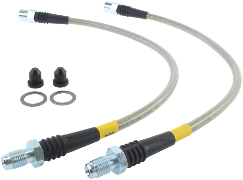 StopTech Stainless Steel Braided Brake Lines provide a quicker; firmer; more consistent pedal response by maintaining consistent brake pressure. Additionally; stainless steel lines provide precision brake modulation; especially during threshold braking. The improvement in pedal feel is more dramatic on older vehicles where the factory rubber line may have softened and swelled due to age.