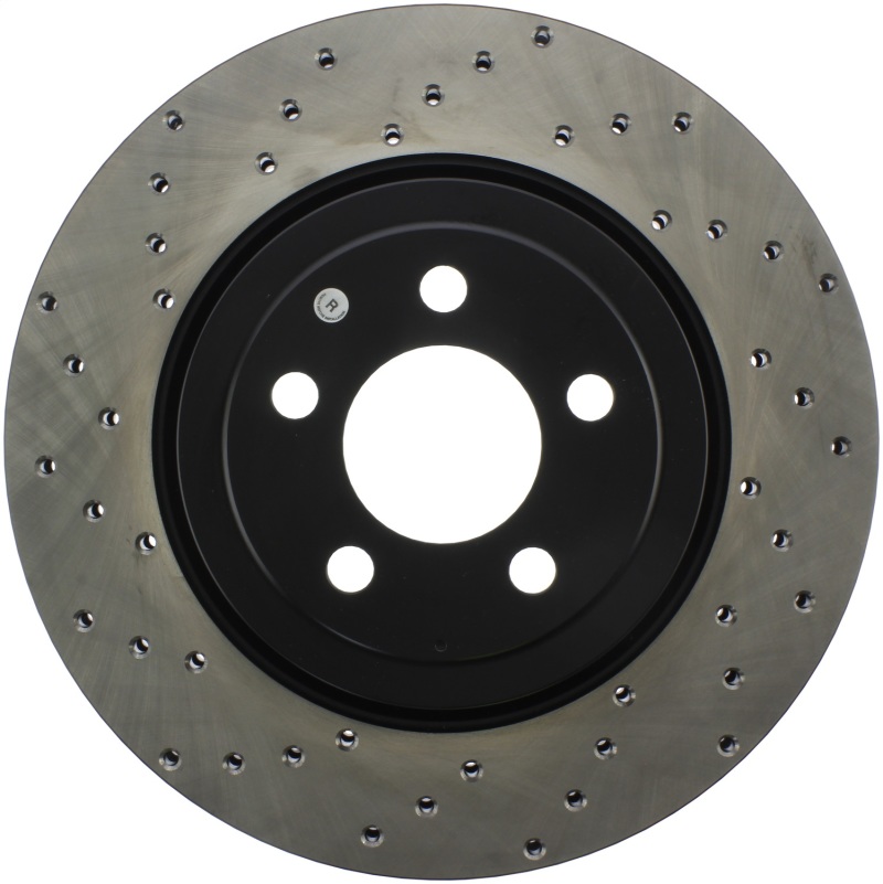 StopTech Drilled Sport Rotors are 1-piece direct replacement brake discs for factory brake systems and stock calipers that look great behind your wheels – and offer significantly improved braking performance. The unique cross-drilling aids with heat and brake dust dispersal; prevents glazing of the pads; adds bite and improves wet and dry braking performance. Built to last; the black e-coating provides protection from corrosion and the high carbon metallurgy (in most applications) offers quieter operation; better crack resistance and increased performance.. StopTech Drilled Sport Rotors are 1-piece direct replacement brake discs for factory brake systems and stock calipers that look great behind your wheels - and offer significantly improved braking performance. The unique cross-drilling aids with heat and brake dust dispersal; prevents glazing of the pads; adds bite and improves wet and dry braking performance. Built to last; the black paint provides protection from corrosion and the high carbon metallurgy (in most applications) offers quieter operation; better crack resistance and increased performance.. Premium e-coated rotor with advanced metallurgy that greatly reduces pad squeal. Especially effective with higher friction; European style brake pad compounds. Drilled for increased bite; improved looks and better performance. Premium rotor with advanced metallurgy that greatly reduces pad squeal. Especially effective with higher friction; European style brake pad compounds. Slotted for increased bite; improved looks and better performance. Premium e-coated rotor with advanced metallurgy that greatly reduces pad squeal; Especially effective with higher friction; European style brake pad compounds; Added Molybdenum and Chromium to resist rotor cracking. Sport Drilled Rotor; StopTech; StopTech Rotor; Stop Tech Rotor; Stop-Tech Sport Rotor; StopTech Sport Rotor; StopTech Brake Rotor; Stoptech Drilled/Slotted Rotor. 2005 - 2019 Chrysler 300, 2009 - 2019 Dodge Challenger, 2006 - 2019 Dodge Charger, 2005 - 2008 Dodge Magnum. StopTech Sport Cross Drilled Brake Rotor; Front Right. Black E-Coated Non-Friction - Corrosion Protection. Double Disk Ground For Consistent Friction Surface. Superior Resistance To Cracks From Thermal Stress. Increased Initial bite and Wet Weather Response. Drilled/Slotted Helps Evacuate Gasses/Dust/Heat. Power Alloy Is Descendant Of Patented AeroRotor. Directional Curve Vane Designs On Selected Apps. Sport Cross Drilled Brake Rotor; Front Right. StopTech Drilled Sport Brake Rotor. Sport Cross Drilled Brake Rotor. Stoptech Drilled/Slotted Rotor. StopTech Sport Drilled Disc. Direct OE Replacement. Cross Drilled Rotor. Disc Brake Rotor