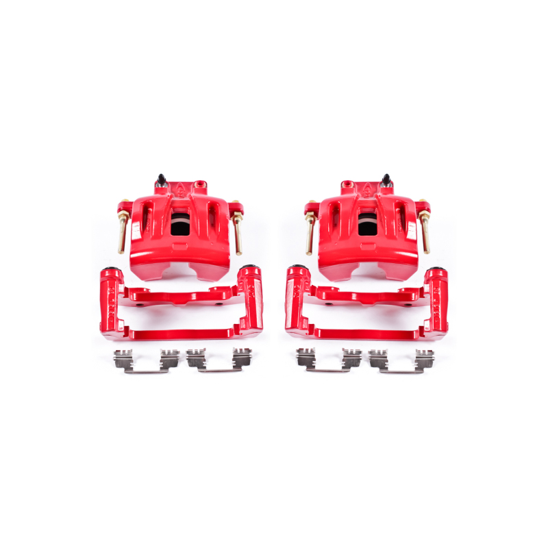 PowerStop Powder Coated Brake Calipers are made specifically with the enthusiast in mind. These calipers (sold as pairs) bolt directly in place of the original stock calipers and look great behind any set of wheels. PowerStop Brake Calipers are engineered to provide the best performance and reliability, and are coated with a durable electrostatic high-temperature red powder coat. The easy-to-clean coating provides resistance to rust and corrosion thus extending the life of your calipers. PowerStop calipers are 100% pressure tested and inspected to verify piston operation to guarantee a reliable, high quality brake performance. Expertly assembled with everything needed for a brake upgrade using new seals, caliper slide pins/bolts, dust boots, bleeder screws, and stainless-steel pad attachment hardware. High temperature EPDM rubber dust boots and premium lubricants ensure a smooth caliper operation and durability in the harshest conditions. PowerStop Powder Coated Brake Calipers are finished in a high-temp powder coating and designed to enhance both the performance and custom look of your vehicle!. New seals, caliper guide pins, dust boots, bleeder screws, stainless steel brake pad attachment hardware and mounting brackets.. Premium lubricant is used to ensure a smooth caliper operation and durability in the harshest conditions.. Easy to clean powder coating helps to resist rust and corrosion and extends the life of calipers.. 100% Pressure tested and inspected for high quality brake performance.. Power Stop 05-11 Chrysler 300 Front Red Calipers w/Brackets - Pair. High-Temp red powder coating keeps calipers looking new longer. HIGH-TEMP RED POWDER COATED CALIPERS (PAIR). Bolt on ready, no modifications necessary. High-Temp EPDM rubber dust boots. Floating Caliper with Bracket. Red Powder Coated Calipers. Disc Brake Caliper Set. Caliper Set