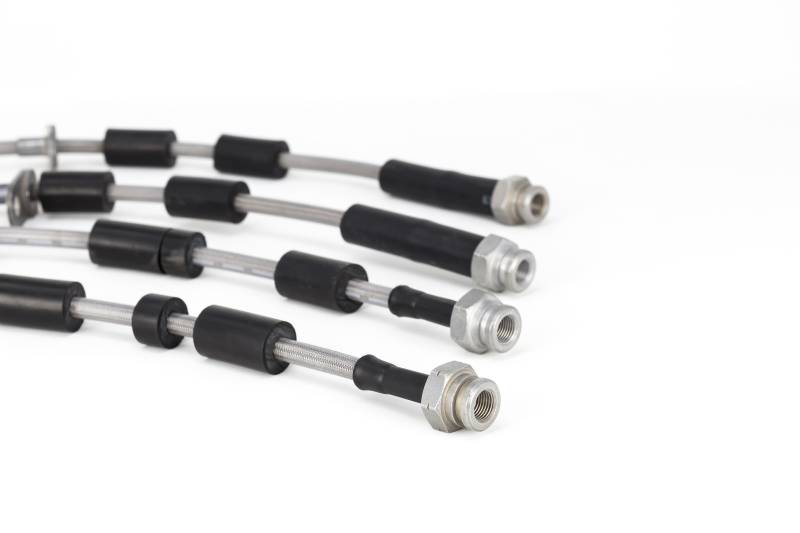 Goodridge stainless steel brake or clutch hose kits are available to suit all models of car, whatever the make. Kits feature the finest quality hose, consisting of a PTFE inner with a stainless steel outerbraid. This eliminates the spongy pedal feel under arduous conditions, giving greater braking efficiency or clutch operation as well as providing superior resistance to abrasion and corrosion. These kits, therefore, not only provide the reliability and safety demanded but offer brilliant good looks that improve the appearance of any installation. Most brake and clutch lines car kit specifications are on file but any additional information is always appreciated. Goodridge G-Stop Brake Line Kits are constructed from the finest quality hose, consisting of a PTFE inner and stainless steel overbraid. Replacing OE brake lines with -03 PTFE hose improves brake feel over factory lines, eliminates sponginess, and provides shorter stopping distances and consistent braking in performance applications.. Goodridge 14-19 Ford Fiesta ST Stainless Steel Brake Line Kit. Terrific Performance Enhancement And Safety Improvement. More Consistent Pedal Response Under Heavy Braking. G-STOP SS Braided Brake Line Kit; Incl. 4 Lines;. Reduced Pedal Chatter When Use With ABS System. 9-Point Quality Assurance Testing Process. Eliminates Sponginess Under Braking. Conform To All Federal Requirements. G-STOP SS Braided Brake Line Kit. Abrasion and Corossion Resistent. Extended Lines For Lift Kits. Increases Braking Efficiency. Reduces Stopping Distance. Lifetime Warranty. D.O.T. Compliant. Brake Hose Kit