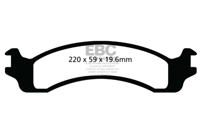 An excellent solution for 4x4 use, this heavy duty Greenstuff formulation has slightly lower friction than its 2000 series counterpart (average friction coefficient 0.45mm) but has the benefit of longer life and better resistance to offroad conditions of dust and sand etc. It has an extremely low rotor wear factor and medium-to-good lifetime.. 6000 Series Greenstuff Truck/SUV Brakes Disc Pads; FMSI Pad No. D859; Vented; 327mm Dia.; 102mm Height; 36mm Thick; 122.4mm Center Hole Dia.; Pad Dimensions: 220 x 59 x 19.6mm;. EBC 00-02 Dodge Ram 2500 Pick-up 5.2 2WD (Pad with wear sensor) Greenstuff Front Brake Pads. 6000 Series Greenstuff Truck/SUV Brakes Disc Pads. Sport Replacement Pad For Truck/SUV. Improves Stopping Power. Disc Brake Pad Set. Disc Brake Pad. Lower Dust