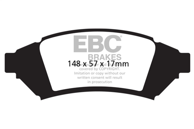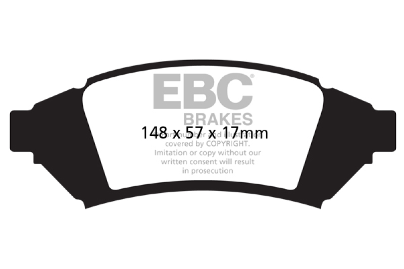If you simply need a quality OEM replacement pad, look no further than Ultimax. Made in the UK Bristol EBC Brakes manufacturing plant Ultimax is a beautifully engineered brake compound that lasts well, produces minimal dust and is the perfect choice for the urban or daily driver. Why spend more if all you need is a quality replacement pad.The Ultimax pad does include a small percentage of steel fibre to achieve its price point, far less content than our competition where steel fibre content can attain 50 volume and this optimum fibre blend is what makes Ultimax both popular and unique amongst brake blends .Once bedded in Ultimax will inspire confidence in any car light truck or SUV no matter how you drive.Its universal heat range abilities and low rotor wear are additional benefits of the Ultimax pad range which is the EBC worldwide number one selling brake with numbers of sets sold running into tens of millions over the recent years. Unlike many of our performance grades Ultimax has remain unchanged as a pad compound for ten years now, a true testament to its success and customer acceptance. Why change a winning formula.Black coded in the EBC range EBC Ultimax is a fully ECE R 90 approved brake pad range and at its lower price point, less than HALF the price of original parts yet TOTALLY EQUIVALENT by nature of its R 90 brake safety approval, Ultimax offers great value for money and first class driving safety.When replacing brakes of any kind please remember how important brake safety is to your own well being and either have a professional mechanic install your new brakes or if you are a qualified mechanic use the EBC installation DVD as a guide in support of your vehicle owner's manual. These installation guide DVD tasters can be viewed here and the full DVD purchased from online vendors.. If you simply need a quality OEM replacement pad, look no further than Ultimax. Made in the UK Bristol EBC Brakes manufacturing plant Ultimax is a beautifully engineered brake compound that lasts well, produces minimal dust and is the perfect choice for the urban or daily driver. Why spend more if all you need is a quality replacement pad.The Ultimax pad does include a small percentage of steel fibre to achieve its price point, far less content than our competition where steel fibre content can attain 50 volume and this optimum fibre blend is what makes Ultimax both popular and unique amongst brake blends .Once bedded in Ultimax will inspire confidence in any car light truck or SUV no matter how you drive.Its universal heat range abilities and low rotor wear are additional benefits of the Ultimax pad range which is the EBC worldwide number one selling brake with numbers of sets sold running into tens of millions over the recent years. Unlike many of our performance grades Ultimax has remain unchanged as a pad compound for ten years now, a true testament to its success and customer acceptance. Why change a winning formula.Black coded in the EBC range EBC Ultimax is a fully ECE R 90 approved brake pad range and at its lower price point, less than HALF the price of original parts yet TOTALLY EQUIVALENT by nature of its R 90 brake safety approval, Ultimax offers great value for money and first class driving safety.When replacing brakes of any kind please remember how important brake safety is to your own well being and either have a professional mechanic install your new brakes or if you are a qualified mechanic use the EBC installation DVD as a guide in support of your vehicle owner's manual. These installation guide DVD tasters can be viewed here and the full DVD purchased from online vendors.. Ultimax OEM Replacement Brake Pads; FMSI Pad No. D1000; Vented; 297mm Dia.; 52mm Height; 33mm Thick; 70.6mm Center Hole Dia.; Pad Dimensions: 148 x 57 x 17mm;. EBC 04 Pontiac Grand Prix 3.8 Ultimax2 Front Brake Pads. High Friction European Spec Friction. Ultimax OEM Replacement Brake Pads. Shimmed Slotted And Chamfered. Premium OE Replacement Pad. Ideal For Daily Driver Use. Disc Brake Pad Set. Disc Brake Pad. OE Hardware