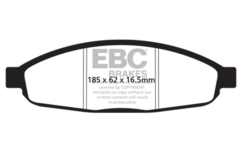 If you simply need a quality OEM replacement pad, look no further than Ultimax. Made in the UK Bristol EBC Brakes manufacturing plant Ultimax is a beautifully engineered brake compound that lasts well, produces minimal dust and is the perfect choice for the urban or daily driver. Why spend more if all you need is a quality replacement pad.The Ultimax pad does include a small percentage of steel fibre to achieve its price point, far less content than our competition where steel fibre content can attain 50 volume and this optimum fibre blend is what makes Ultimax both popular and unique amongst brake blends .Once bedded in Ultimax will inspire confidence in any car light truck or SUV no matter how you drive.Its universal heat range abilities and low rotor wear are additional benefits of the Ultimax pad range which is the EBC worldwide number one selling brake with numbers of sets sold running into tens of millions over the recent years. Unlike many of our performance grades Ultimax has remain unchanged as a pad compound for ten years now, a true testament to its success and customer acceptance. Why change a winning formula.Black coded in the EBC range EBC Ultimax is a fully ECE R 90 approved brake pad range and at its lower price point, less than HALF the price of original parts yet TOTALLY EQUIVALENT by nature of its R 90 brake safety approval, Ultimax offers great value for money and first class driving safety.When replacing brakes of any kind please remember how important brake safety is to your own well being and either have a professional mechanic install your new brakes or if you are a qualified mechanic use the EBC installation DVD as a guide in support of your vehicle owner's manual. These installation guide DVD tasters can be viewed here and the full DVD purchased from online vendors.. If you simply need a quality OEM replacement pad, look no further than Ultimax. Made in the UK Bristol EBC Brakes manufacturing plant Ultimax is a beautifully engineered brake compound that lasts well, produces minimal dust and is the perfect choice for the urban or daily driver. Why spend more if all you need is a quality replacement pad.The Ultimax pad does include a small percentage of steel fibre to achieve its price point, far less content than our competition where steel fibre content can attain 50 volume and this optimum fibre blend is what makes Ultimax both popular and unique amongst brake blends .Once bedded in Ultimax will inspire confidence in any car light truck or SUV no matter how you drive.Its universal heat range abilities and low rotor wear are additional benefits of the Ultimax pad range which is the EBC worldwide number one selling brake with numbers of sets sold running into tens of millions over the recent years. Unlike many of our performance grades Ultimax has remain unchanged as a pad compound for ten years now, a true testament to its success and customer acceptance. Why change a winning formula.Black coded in the EBC range EBC Ultimax is a fully ECE R 90 approved brake pad range and at its lower price point, less than HALF the price of original parts yet TOTALLY EQUIVALENT by nature of its R 90 brake safety approval, Ultimax offers great value for money and first class driving safety.When replacing brakes of any kind please remember how important brake safety is to your own well being and either have a professional mechanic install your new brakes or if you are a qualified mechanic use the EBC installation DVD as a guide in support of your vehicle owner's manual. These installation guide DVD tasters can be viewed here and the full DVD purchased from online vendors.. Ultimax OEM Replacement Brake Pads; FMSI Pad No. D997; Vented; 318mm Dia.; 47.5mm Height; 28mm Thick; 82mm Center Hole Dia.; Pad Dimensions: 185 x 62 x 16.5mm;. EBC 05-07 Chrysler Pacifica 3.5 Ultimax2 Front Brake Pads. High Friction European Spec Friction. Ultimax OEM Replacement Brake Pads. Shimmed Slotted And Chamfered. Premium OE Replacement Pad. Ideal For Daily Driver Use. Disc Brake Pad Set. Disc Brake Pad. OE Hardware