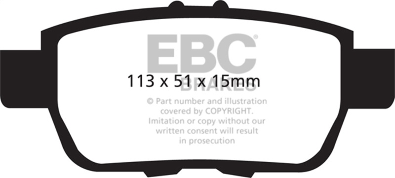 An excellent solution for 4x4 use, this heavy duty Greenstuff formulation has slightly lower friction than its 2000 series counterpart (average friction coefficient 0.45mm) but has the benefit of longer life and better resistance to offroad conditions of dust and sand etc. It has an extremely low rotor wear factor and medium-to-good lifetime.. 6000 Series Greenstuff Truck/SUV Brakes Disc Pads; FMSI Pad No. D1103; Solid; 333mm Dia.; 56mm Height; 11mm Thick; 70.1mm Center Hole Dia.; Pad Dimensions: 113 x 51 x 15mm;. EBC 05-14 Honda Ridgeline 3.5 Greenstuff Rear Brake Pads. 6000 Series Greenstuff Truck/SUV Brakes Disc Pads. Sport Replacement Pad For Truck/SUV. Improves Stopping Power. Disc Brake Pad Set. Disc Brake Pad. Lower Dust