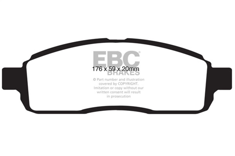 An excellent solution for 4x4 use, this heavy duty Greenstuff formulation has slightly lower friction than its 2000 series counterpart (average friction coefficient 0.45mm) but has the benefit of longer life and better resistance to offroad conditions of dust and sand etc. It has an extremely low rotor wear factor and medium-to-good lifetime.. 6000 Series Greenstuff Truck/SUV Brakes Disc Pads; FMSI Pad No. D1392; Vented; 330mm Dia.; 52.5mm Height; 30mm Thick; 90.1mm Center Hole Dia.; Pad Dimensions: 176 x 59 x 20mm;. EBC 09 Ford F150 4.6 (2WD) 6 Lug Greenstuff Front Brake Pads. 6000 Series Greenstuff Truck/SUV Brakes Disc Pads. Sport Replacement Pad For Truck/SUV. Improves Stopping Power. Disc Brake Pad Set. Disc Brake Pad. Lower Dust