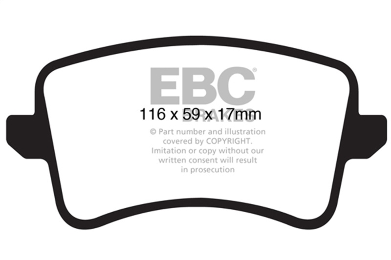 If you simply need a quality OEM replacement pad, look no further than Ultimax. Made in the UK Bristol EBC Brakes manufacturing plant Ultimax is a beautifully engineered brake compound that lasts well, produces minimal dust and is the perfect choice for the urban or daily driver. Why spend more if all you need is a quality replacement pad.The Ultimax pad does include a small percentage of steel fibre to achieve its price point, far less content than our competition where steel fibre content can attain 50 volume and this optimum fibre blend is what makes Ultimax both popular and unique amongst brake blends .Once bedded in Ultimax will inspire confidence in any car light truck or SUV no matter how you drive.Its universal heat range abilities and low rotor wear are additional benefits of the Ultimax pad range which is the EBC worldwide number one selling brake with numbers of sets sold running into tens of millions over the recent years. Unlike many of our performance grades Ultimax has remain unchanged as a pad compound for ten years now, a true testament to its success and customer acceptance. Why change a winning formula.Black coded in the EBC range EBC Ultimax is a fully ECE R 90 approved brake pad range and at its lower price point, less than HALF the price of original parts yet TOTALLY EQUIVALENT by nature of its R 90 brake safety approval, Ultimax offers great value for money and first class driving safety.When replacing brakes of any kind please remember how important brake safety is to your own well being and either have a professional mechanic install your new brakes or if you are a qualified mechanic use the EBC installation DVD as a guide in support of your vehicle owner's manual. These installation guide DVD tasters can be viewed here and the full DVD purchased from online vendors.. If you simply need a quality OEM replacement pad, look no further than Ultimax. Made in the UK Bristol EBC Brakes manufacturing plant Ultimax is a beautifully engineered brake compound that lasts well, produces minimal dust and is the perfect choice for the urban or daily driver. Why spend more if all you need is a quality replacement pad.The Ultimax pad does include a small percentage of steel fibre to achieve its price point, far less content than our competition where steel fibre content can attain 50 volume and this optimum fibre blend is what makes Ultimax both popular and unique amongst brake blends .Once bedded in Ultimax will inspire confidence in any car light truck or SUV no matter how you drive.Its universal heat range abilities and low rotor wear are additional benefits of the Ultimax pad range which is the EBC worldwide number one selling brake with numbers of sets sold running into tens of millions over the recent years. Unlike many of our performance grades Ultimax has remain unchanged as a pad compound for ten years now, a true testament to its success and customer acceptance. Why change a winning formula.Black coded in the EBC range EBC Ultimax is a fully ECE R 90 approved brake pad range and at its lower price point, less than HALF the price of original parts yet TOTALLY EQUIVALENT by nature of its R 90 brake safety approval, Ultimax offers great value for money and first class driving safety.When replacing brakes of any kind please remember how important brake safety is to your own well being and either have a professional mechanic install your new brakes or if you are a qualified mechanic use the EBC installation DVD as a guide in support of your vehicle owner's manual. These installation guide DVD tasters can be viewed here and the full DVD purchased from online vendors.. Ultimax OEM Replacement Brake Pads; FMSI Pad No. D1386; Pad Dimensions: 116 x 59 x 17mm;. EBC 09-11 Audi A4 2.0 Turbo Ultimax2 Rear Brake Pads. High Friction European Spec Friction. Ultimax OEM Replacement Brake Pads. Shimmed Slotted And Chamfered. Premium OE Replacement Pad. Ideal For Daily Driver Use. Disc Brake Pad Set. Disc Brake Pad. OE Hardware