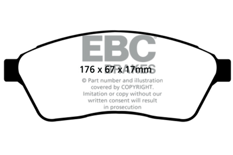 EBC Yellowstuff is an aramid fibre based brake compound with high brake effect form cold and is possibly one of the first ever compounds that can be used for STREET AND TRACK DRIVING. These pads do not require warm up but do get even stronger under the heat of hard driving. These are not a low dust pad and if your desire is for a low dust premium street use pad, you should consider EBC Redstuff.When considering full race use, Yellowstuff has been a strong favourite, having been used for two years in the Swedish Camaro Cup and at numerous other race events where a stock caliper system is fitted.It is also the choice of 90-percent of the Mazda MX5 Miata competitors in the UK race series and has an unblemished record as rotor friendly track pad for vehicles up to 2000 lbs weight or 200 BHP.In the USA the SCCA and NASA drivershave been testing Yellowstuff with feedback and good reports POURING in from a 543 test driver major market proving event with these groups. Read that figure again 543 test drivers.There is no guesswork here.. Yellowstuff Street And Track Brake Pads; FMSI Pad No. D1422; Pad Dimensions: 176 x 67 x 17mm;. EBC 10-11 Cadillac SRX 2.8 Turbo Yellowstuff Front Brake Pads. Yellowstuff Street And Track Brake Pads. Zero Fade Race Developed Compound. Brakes Effective Right From Cold. Can Be Used On Street/Race Track. Better High Speed Stopping. Disc Brake Pad Set. High Friction Pad. Disc Brake Pad