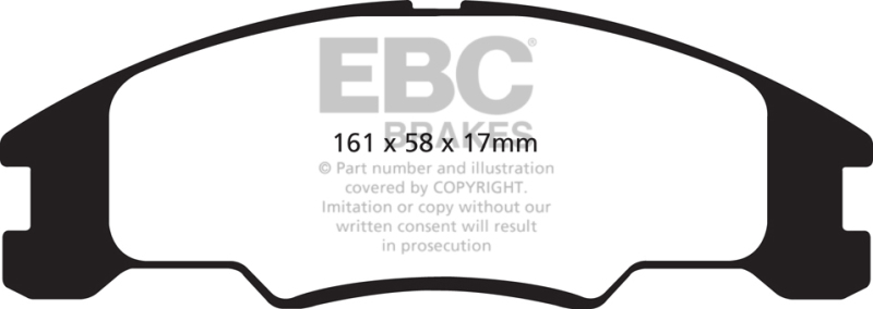 Designed for premium street driving offering better brake effect up to 600-degrees C (1100-degrees F). EBC Greenstuff has a high initial brake effect and gives drivers confidence from first application of the brake pedal. There is no such thing as a NO DUST pad. The very nature of how a brake works requires that some dust be generated to avoid rotor vibration (shimmying). The EBC pad creates less dust and dust is more easily washed off than most. All pads create more dust as they are bedding in especially if rotors are worn. Nominal friction coefficient 0.55. For heavier faster cars and vehicles above 200bhp we strongly recommend Redstuff which DOES offer much less dust.. Greenstuff 2000 Series Sport Brake Pads; FMSI Pad No. D1339; Vented; 275mm Dia.; 45mm Height; 25mm Thick; 63.6mm Center Hole Dia.; Pad Dimensions: 161 x 58 x 17mm;. EBC 10-11 Ford Focus 1.6 Greenstuff Front Brake Pads. Greenstuff 2000 Series Sport Brake Pads. Ideal For Lighter Sport Compacts. Number One Selling Sport Pad. Improves Stopping Power. Disc Brake Pad Set. Reduces Heat Fade. Minimal Dusting. Disc Brake Pad