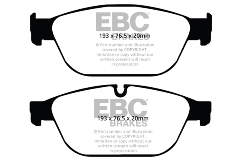 EBC Yellowstuff is an aramid fibre based brake compound with high brake effect form cold and is possibly one of the first ever compounds that can be used for STREET AND TRACK DRIVING. These pads do not require warm up but do get even stronger under the heat of hard driving. These are not a low dust pad and if your desire is for a low dust premium street use pad, you should consider EBC Redstuff.When considering full race use, Yellowstuff has been a strong favourite, having been used for two years in the Swedish Camaro Cup and at numerous other race events where a stock caliper system is fitted.It is also the choice of 90-percent of the Mazda MX5 Miata competitors in the UK race series and has an unblemished record as rotor friendly track pad for vehicles up to 2000 lbs weight or 200 BHP.In the USA the SCCA and NASA drivershave been testing Yellowstuff with feedback and good reports POURING in from a 543 test driver major market proving event with these groups. Read that figure again 543 test drivers.There is no guesswork here.. Yellowstuff Street And Track Brake Pads; FMSI Pad No. D1546; Pad Dimensions: 193 x 76.5 x 20mm;. EBC 11-12 Audi A8 Quattro 3.0 Supercharged Yellowstuff Front Brake Pads. Yellowstuff Street And Track Brake Pads. Zero Fade Race Developed Compound. Brakes Effective Right From Cold. Can Be Used On Street/Race Track. Better High Speed Stopping. Disc Brake Pad Set. High Friction Pad. Disc Brake Pad