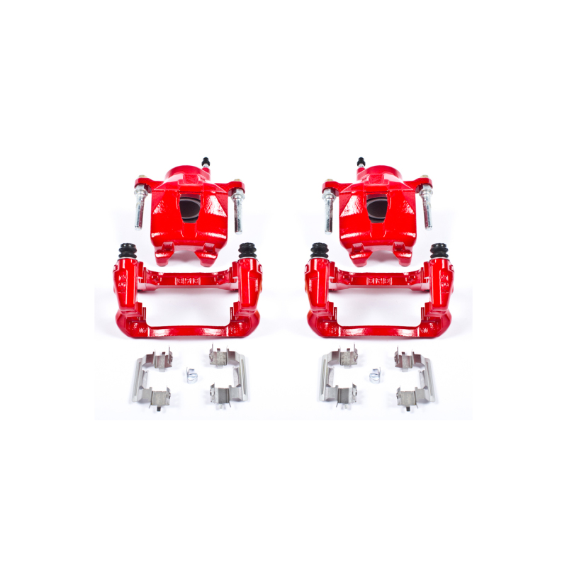 PowerStop Powder Coated Brake Calipers are made specifically with the enthusiast in mind. These calipers (sold as pairs) bolt directly in place of the original stock calipers and look great behind any set of wheels. PowerStop Brake Calipers are engineered to provide the best performance and reliability, and are coated with a durable electrostatic high-temperature red powder coat. The easy-to-clean coating provides resistance to rust and corrosion thus extending the life of your calipers. PowerStop calipers are 100% pressure tested and inspected to verify piston operation to guarantee a reliable, high quality brake performance. Expertly assembled with everything needed for a brake upgrade using new seals, caliper slide pins/bolts, dust boots, bleeder screws, and stainless-steel pad attachment hardware. High temperature EPDM rubber dust boots and premium lubricants ensure a smooth caliper operation and durability in the harshest conditions. PowerStop Powder Coated Brake Calipers are finished in a high-temp powder coating and designed to enhance both the performance and custom look of your vehicle!. New seals, caliper guide pins, dust boots, bleeder screws, stainless steel brake pad attachment hardware and mounting brackets.. Premium lubricant is used to ensure a smooth caliper operation and durability in the harshest conditions.. Easy to clean powder coating helps to resist rust and corrosion and extends the life of calipers.. 100% Pressure tested and inspected for high quality brake performance.. Power Stop 05-10 Scion tC Front Red Calipers w/Brackets - Pair. High-Temp red powder coating keeps calipers looking new longer. HIGH-TEMP RED POWDER COATED CALIPERS (PAIR). Bolt on ready, no modifications necessary. High-Temp EPDM rubber dust boots. Floating Caliper with Bracket. Red Powder Coated Calipers. Disc Brake Caliper Set. Caliper Set