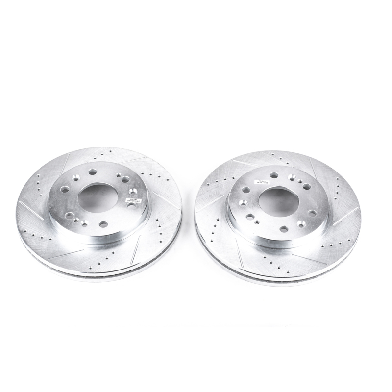 Power Stop drilled and slotted rotors provide a bolt-on upgrade for improved brake cooling and performance. Precision cross-drilled for maximum cooling and maximum performance during extreme conditions; rounded slots sweep away gasses, dust, and moisture to keep a clean friction contact patch on the rotor surface. Silver zinc dichromate plating resists rust and corrosion. With a direct OE fit, there are no special modifications needed.. Power Stop 05-18 Chevrolet Silverado 1500 Front Evolution Drilled & Slotted Rotors - Pair. Manufactured to strict tolerances for DTV and runout for smooth quiet performance. PowerStop Evolution Performance Drilled, Slotted & Plated Brake Rotor Pair. Chamfered drill holes and rounded slots to minimize stress cracking. Precision cross-drilled for maximum cooling and optimum performance. Bolt-on upgrade for stock brakes, no modifications necessary. Slotted friction surface sweeps away gasses, dust, and water. EVOLUTION DRILLED & SLOTTED ZINC PLATED ROTORS (PAIR). Weight and vane count match original equipment design. Zinc plated for protection against corrosion. 100% dynamic mill balanced. Disc Brake Rotor Set. Sold as a pair. PowerStop XPR