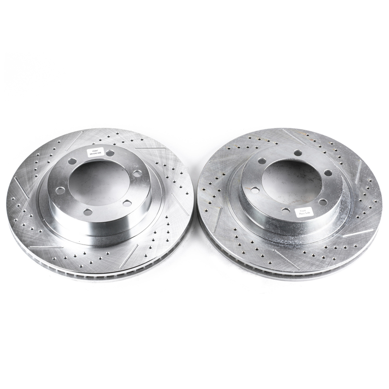 Power Stop drilled and slotted rotors provide a bolt-on upgrade for improved brake cooling and performance. Precision cross-drilled for maximum cooling and maximum performance during extreme conditions; rounded slots sweep away gasses, dust, and moisture to keep a clean friction contact patch on the rotor surface. Silver zinc dichromate plating resists rust and corrosion. With a direct OE fit, there are no special modifications needed.. Manufactured to strict tolerances for DTV and runout for smooth quiet performance. Power Stop 03-09 Lexus GX470 Front Evolution Drilled & Slotted Rotors - Pair. PowerStop Evolution Performance Drilled, Slotted & Plated Brake Rotor Pair. Precision cross-drilled for maximum cooling and optimum performance. Chamfered drill holes and rounded slots to minimize stress cracking. Bolt-on upgrade for stock brakes, no modifications necessary. Slotted friction surface sweeps away gasses, dust, and water. EVOLUTION DRILLED & SLOTTED ZINC PLATED ROTORS (PAIR). Weight and vane count match original equipment design. Zinc plated for protection against corrosion. 100% dynamic mill balanced. Disc Brake Rotor Set. Sold as a pair. PowerStop XPR