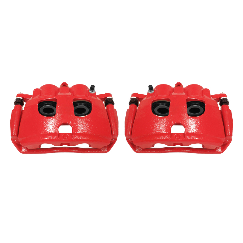 PowerStop Powder Coated Brake Calipers are made specifically with the enthusiast in mind. These calipers (sold as pairs) bolt directly in place of the original stock calipers and look great behind any set of wheels. PowerStop Brake Calipers are engineered to provide the best performance and reliability, and are coated with a durable electrostatic high-temperature red powder coat. The easy-to-clean coating provides resistance to rust and corrosion thus extending the life of your calipers. PowerStop calipers are 100% pressure tested and inspected to verify piston operation to guarantee a reliable, high quality brake performance. Expertly assembled with everything needed for a brake upgrade using new seals, caliper slide pins/bolts, dust boots, bleeder screws, and stainless-steel pad attachment hardware. High temperature EPDM rubber dust boots and premium lubricants ensure a smooth caliper operation and durability in the harshest conditions. PowerStop Powder Coated Brake Calipers are finished in a high-temp powder coating and designed to enhance both the performance and custom look of your vehicle!. New seals, caliper guide pins, dust boots, bleeder screws, stainless steel brake pad attachment hardware and mounting brackets.. Premium lubricant is used to ensure a smooth caliper operation and durability in the harshest conditions.. Easy to clean powder coating helps to resist rust and corrosion and extends the life of calipers.. 100% Pressure tested and inspected for high quality brake performance.. Power Stop 09-10 Dodge Ram 2500 Rear Red Calipers w/Brackets - Pair. High-Temp red powder coating keeps calipers looking new longer. HIGH-TEMP RED POWDER COATED CALIPERS (PAIR). Bolt on ready, no modifications necessary. High-Temp EPDM rubber dust boots. Floating Caliper with Bracket. Red Powder Coated Calipers. Disc Brake Caliper Set. Caliper Set