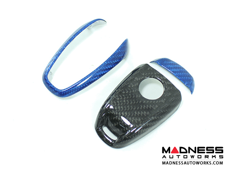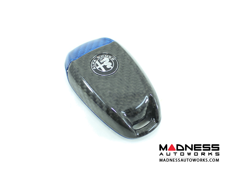 Alfa Romeo Giulia Key Fob Cover - Carbon Fiber - Black Main/ Blue Candy Accents