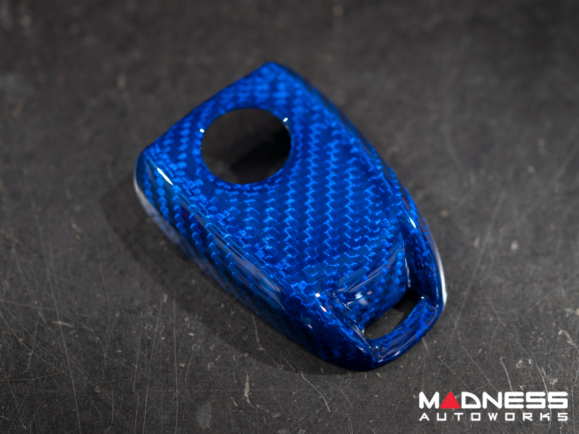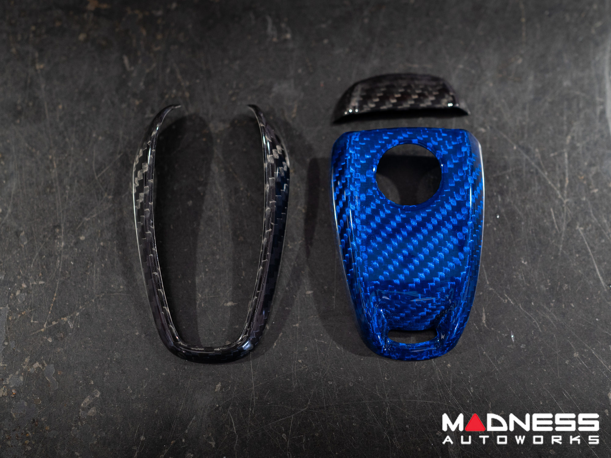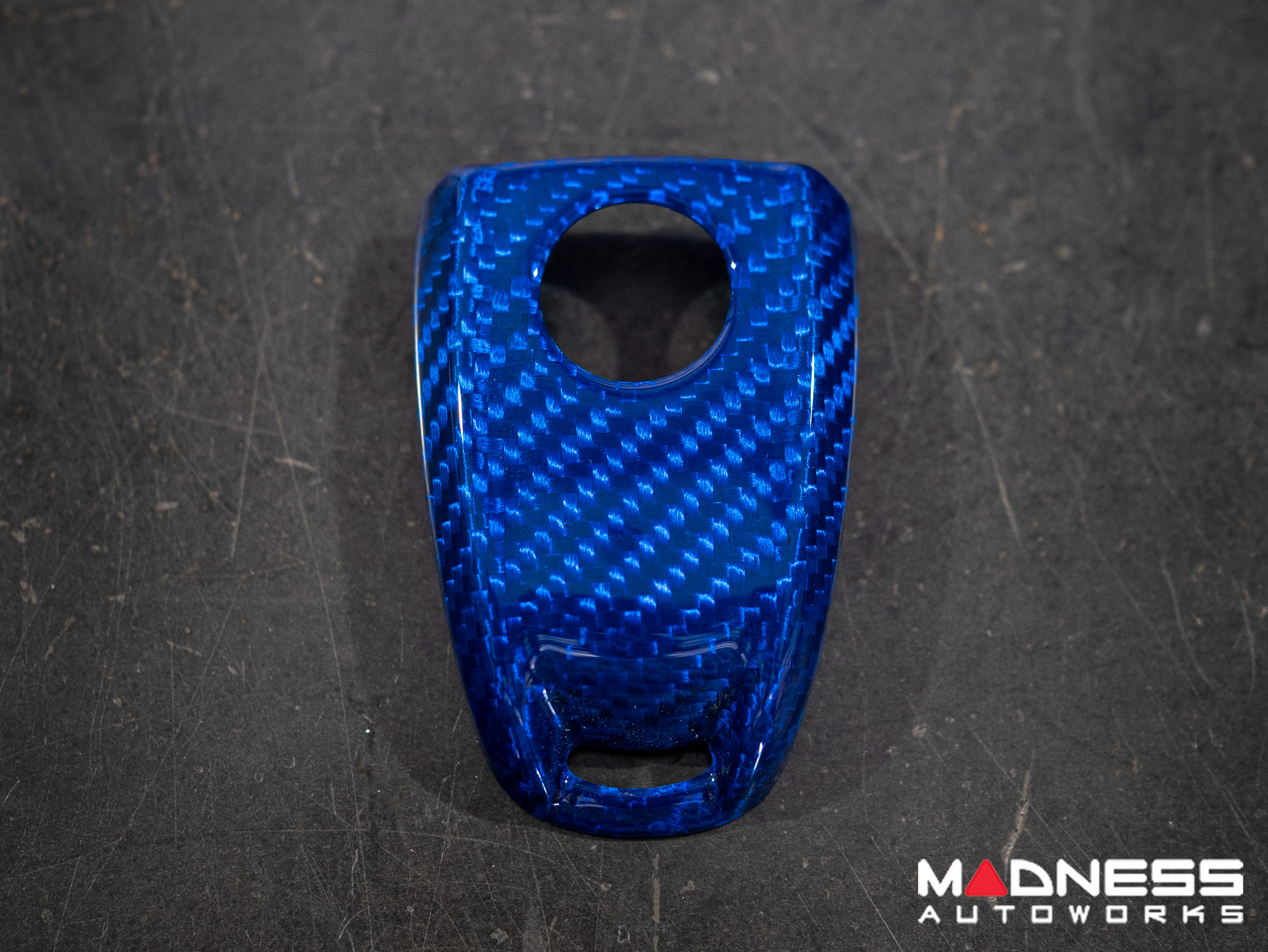 Alfa Romeo Giulia Key Fob Cover - Carbon Fiber - Blue Candy Main/ Black Accents