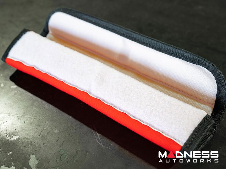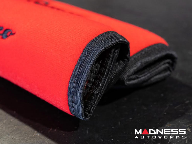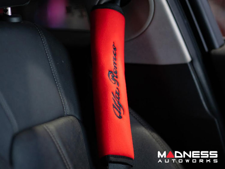 Seat Belt Shoulder Pads - set of 2 - Red w/ Alfa Romeo Logo + Black Binding
