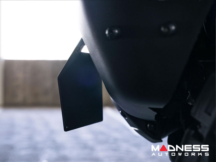 This front license plate relocation bracket places your license plate towards the side of your bumper between the ACC sensor and the bumper wing.