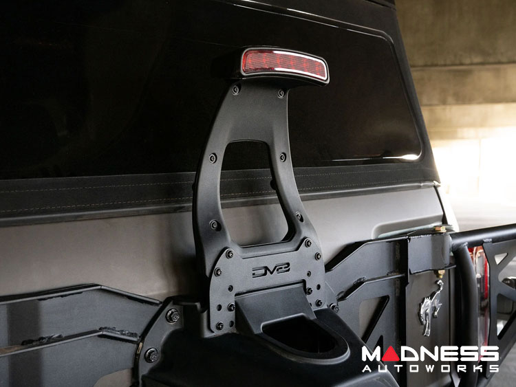 The bracket elevates the Bronco’s OEM 3rd brake light above larger spare tires. This also keeps your Bronco in compliance with certain states’ laws requiring a clearly visible center brake light.