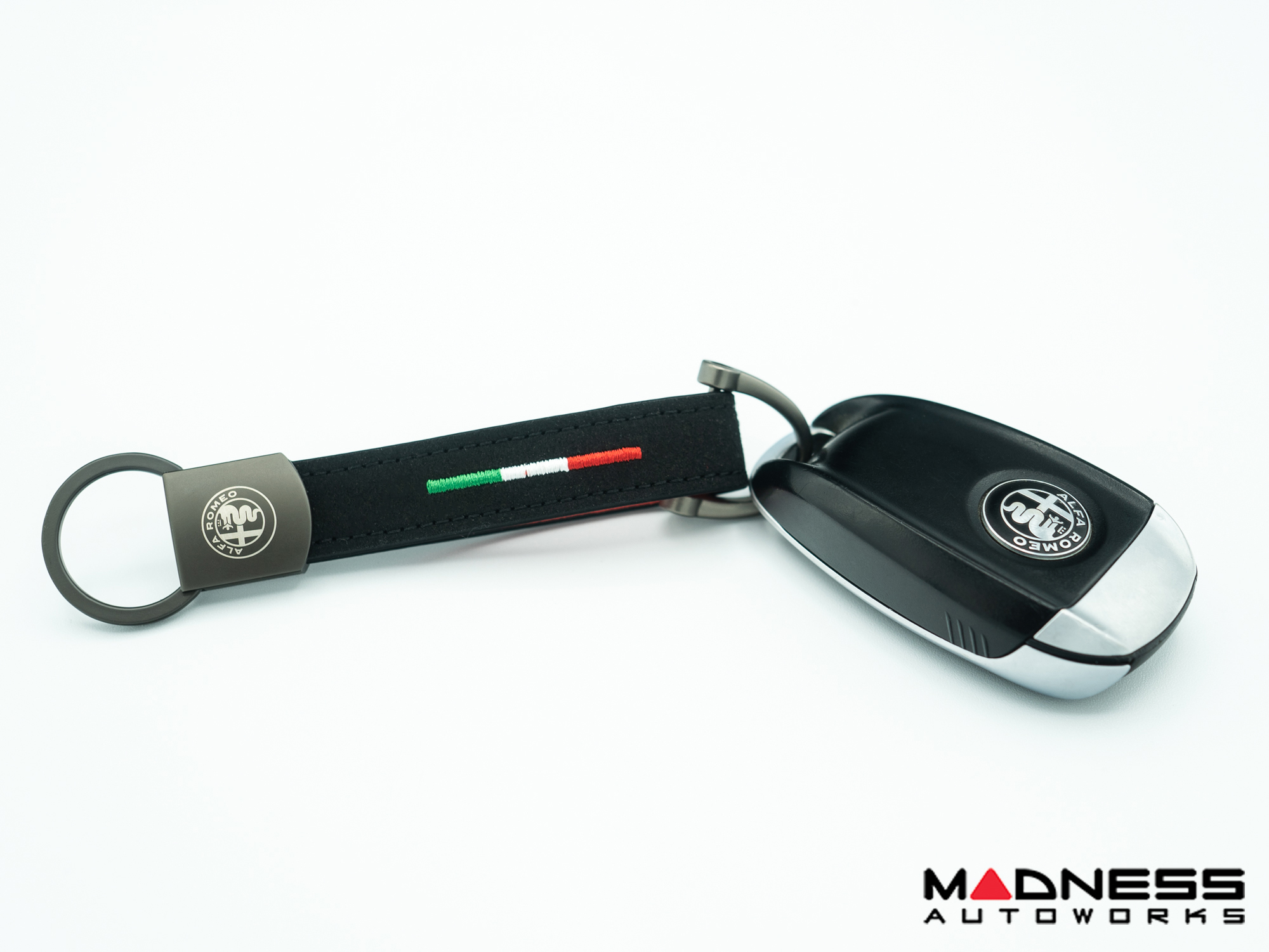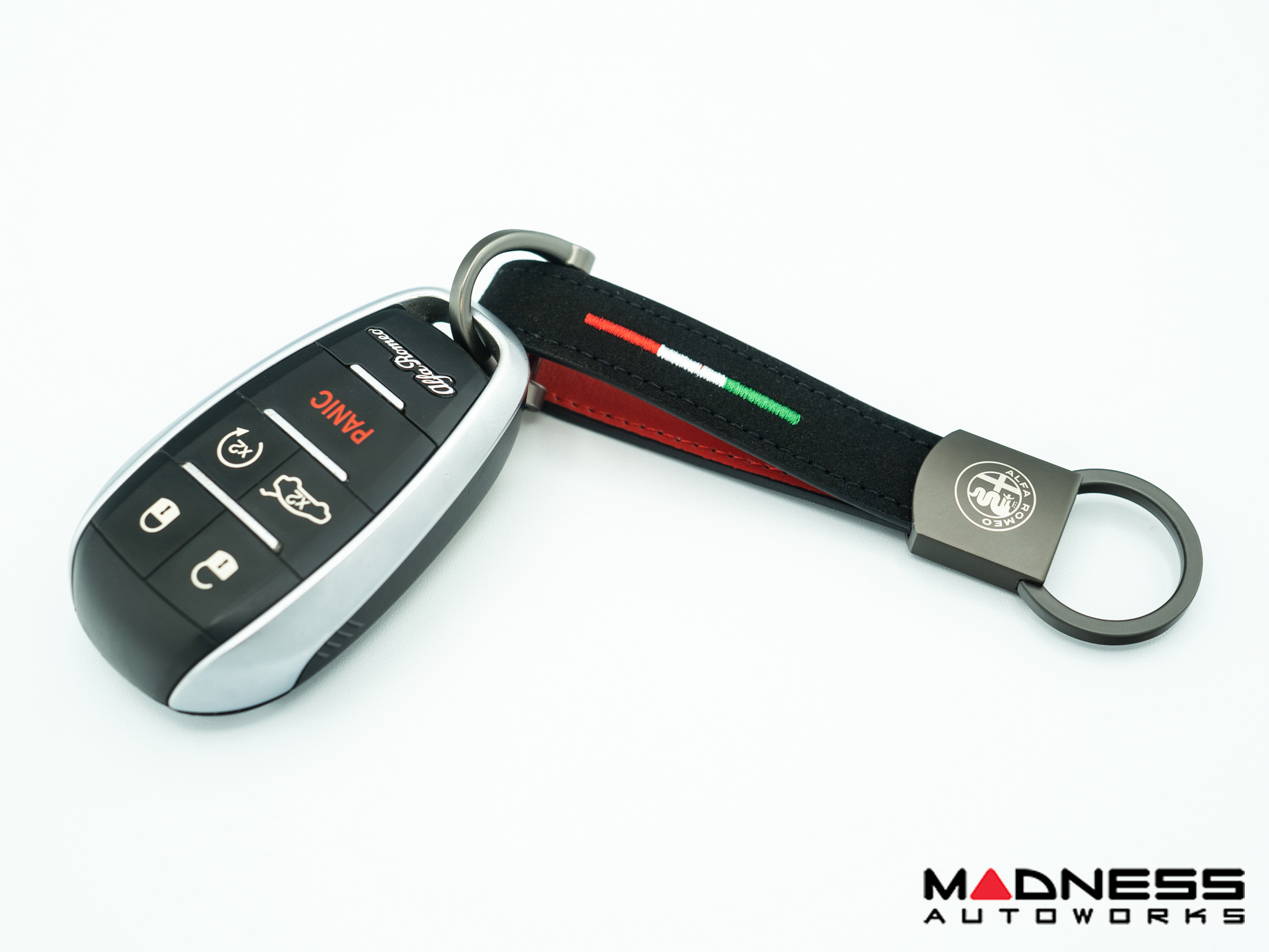 Add a little extra detail to your Alfa Romeo Keyfob with this Genuine Leather Keychain featuring the Alfa Romeo Crest and a nicely stitched Italian Flag.