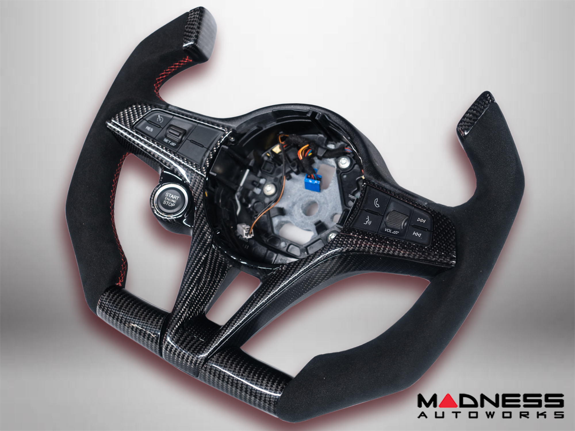 - Steering Wheel features 100% Genuine Carbon Fiber