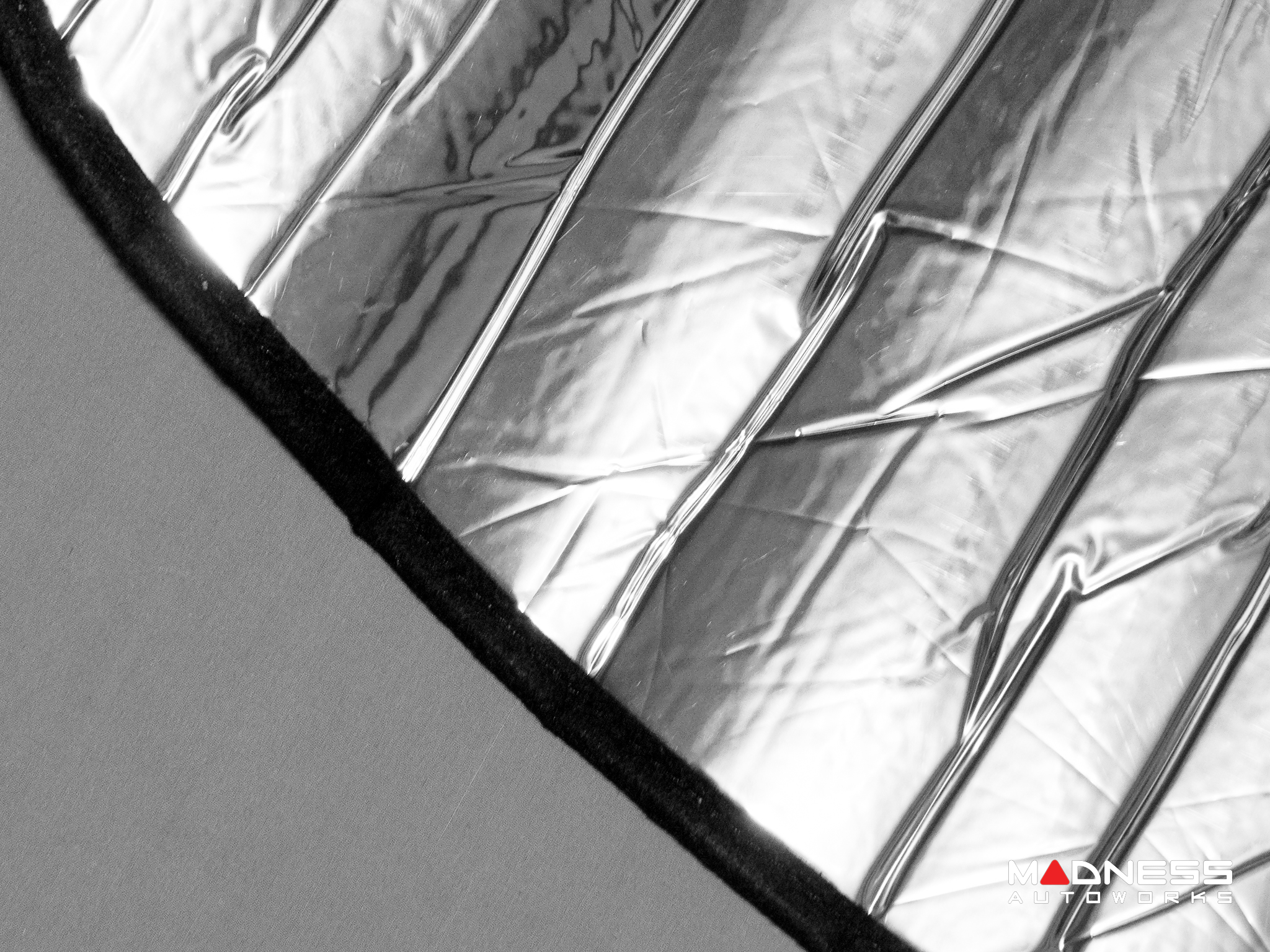 This Custom Alfa Romeo Tonale Sun Shade/ Reflector - Custom Auto Shade is manufactured using a superior quality multi-layered material with a metalized outer film that reflects harming UV rays.